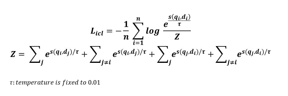 - ICL is bidirectional and enlarges the negative samples with both in-batched queries and documents.