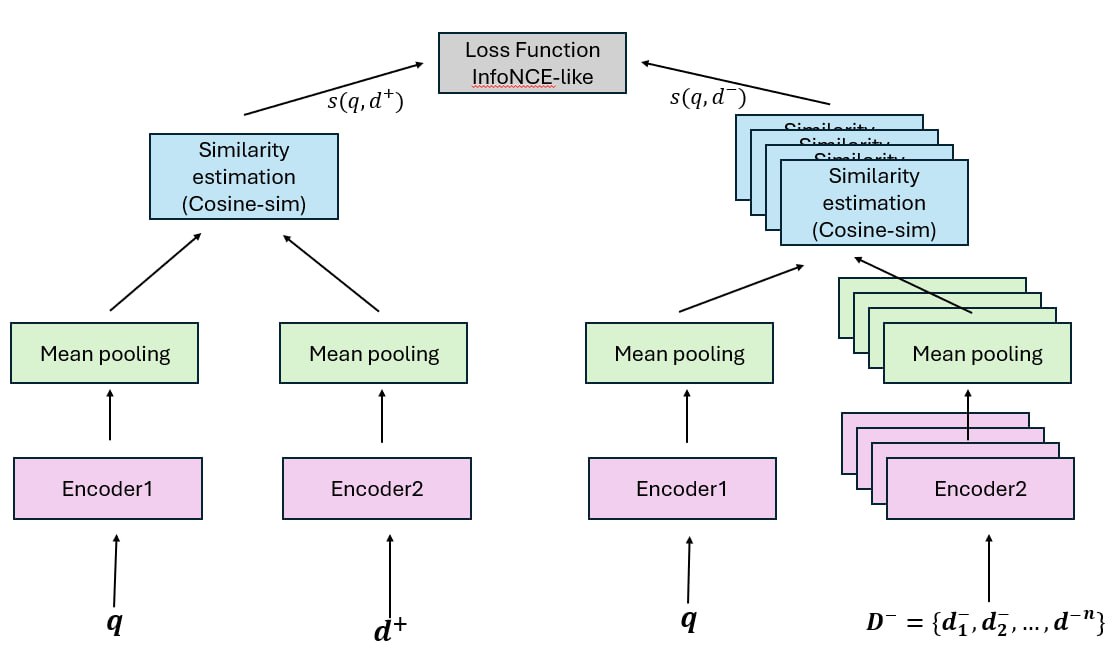 - In the supervised fine-tuning stage, we use relatively lower-sized datasets with human annotation of the relevance between two pieces of text and optional hard negatives mined by an extra retriever to form text triples.