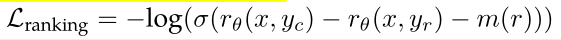 - Naturally, we use a large margin for pairs with distinct responses, and a smaller one for those with similar responses