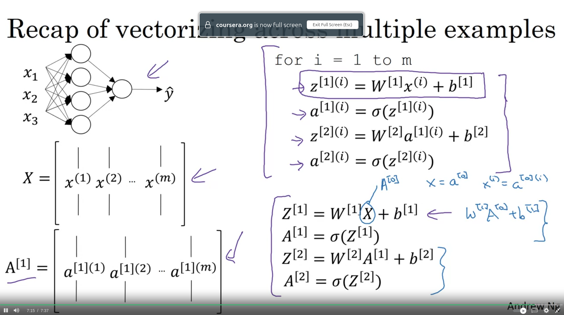 - almost never use sigmoid function except for last layer → for large and small values of x, learning is small since gradient becomes too small → tanh could be used instead