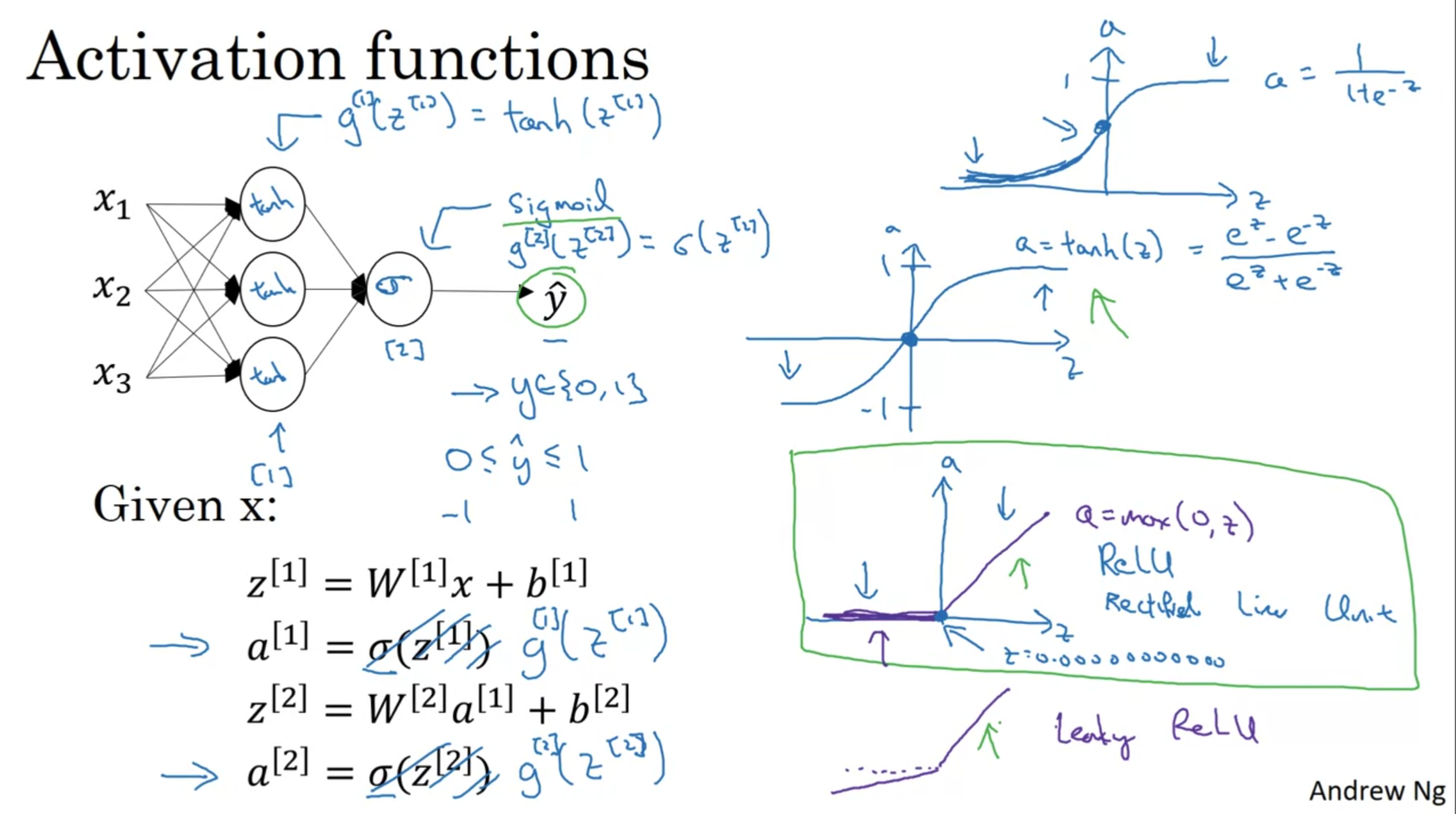 - binary classification taskları için last layerda sigmoid, hidden layerlarda ReLU kullan