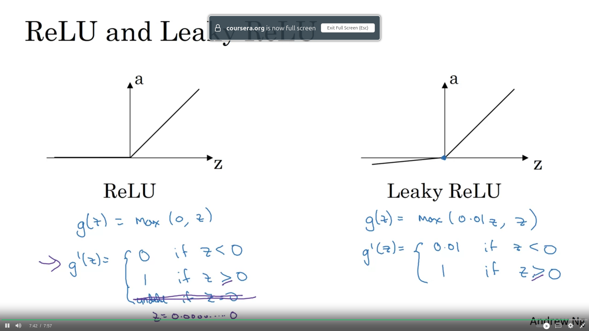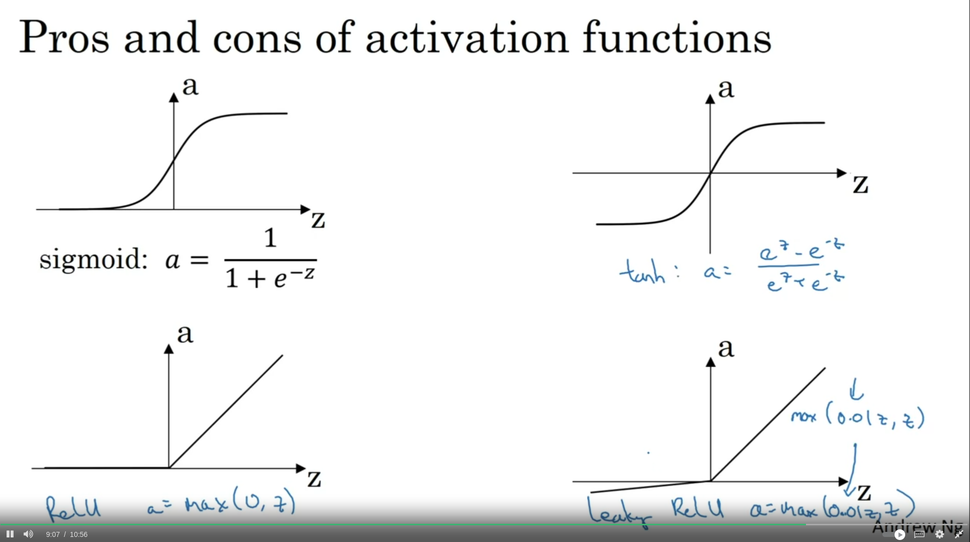- ReLU a = max(0, z) veya leaky ReLU a = max(0.01z, z) kullan
