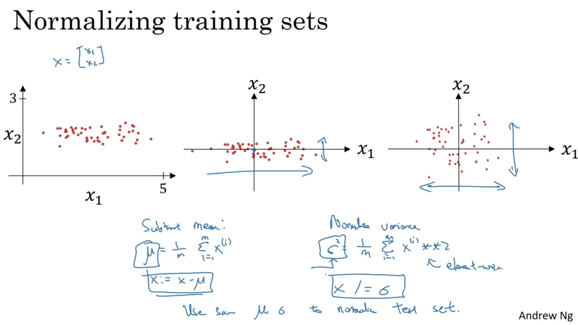 Normalization is used to speed up the training Subtract mean → move the training set until it has zero mean Normalize variances → so that x and y will reside on the same intervals