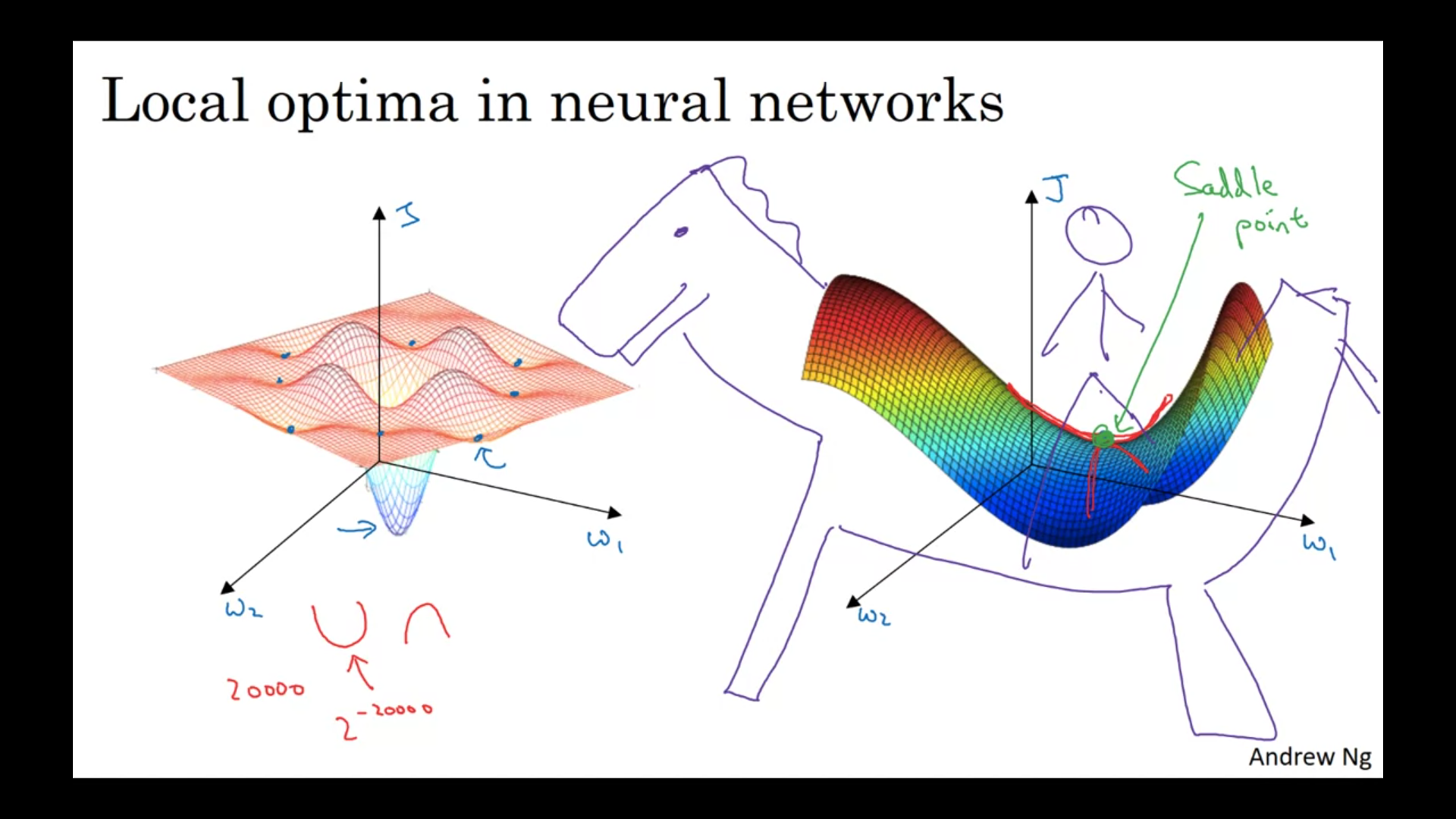 When the derivative is close to 0 for a long time, it slow down the learning → plateaus most points of zero gradient in a cost function are saddle points, not local minimums