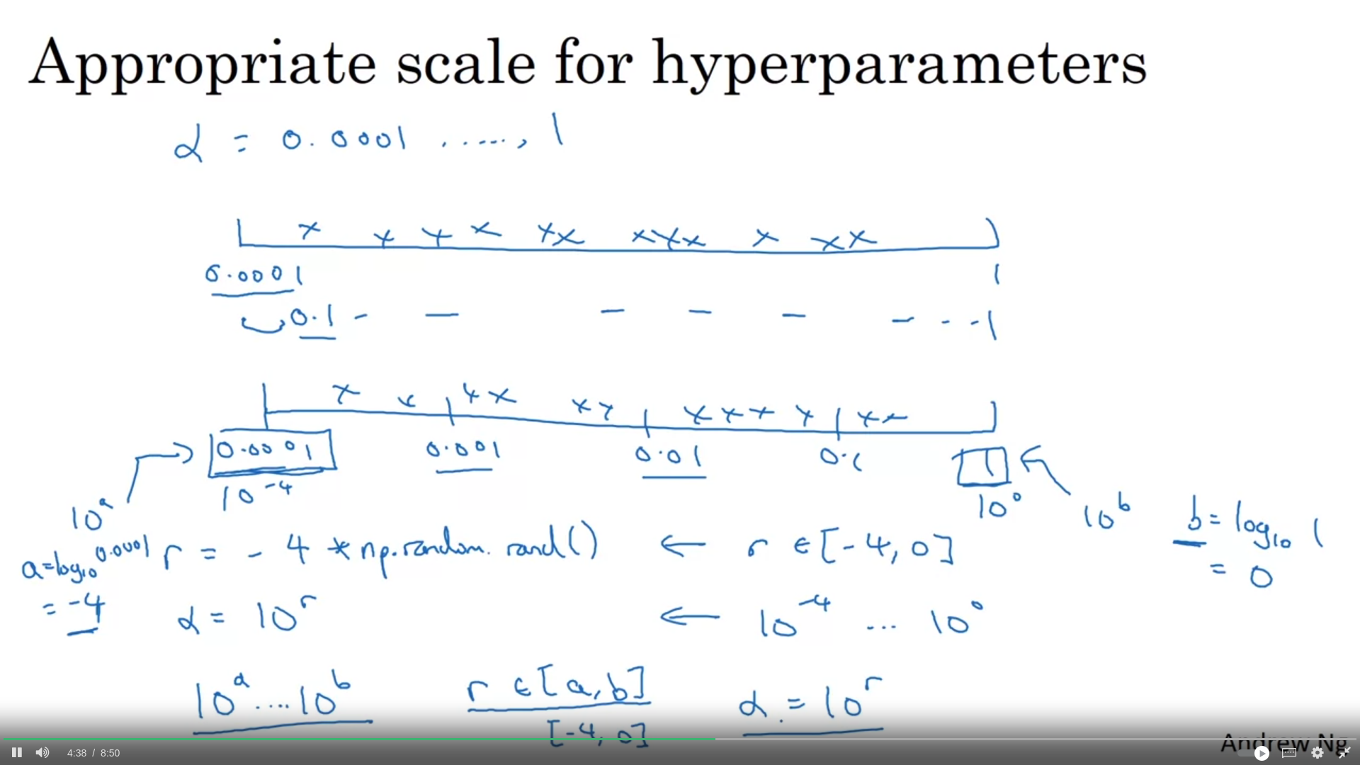 mesela learning rate için arama yaparken logaritmik scale’de uniform randomized bir search yapmak daha makul..